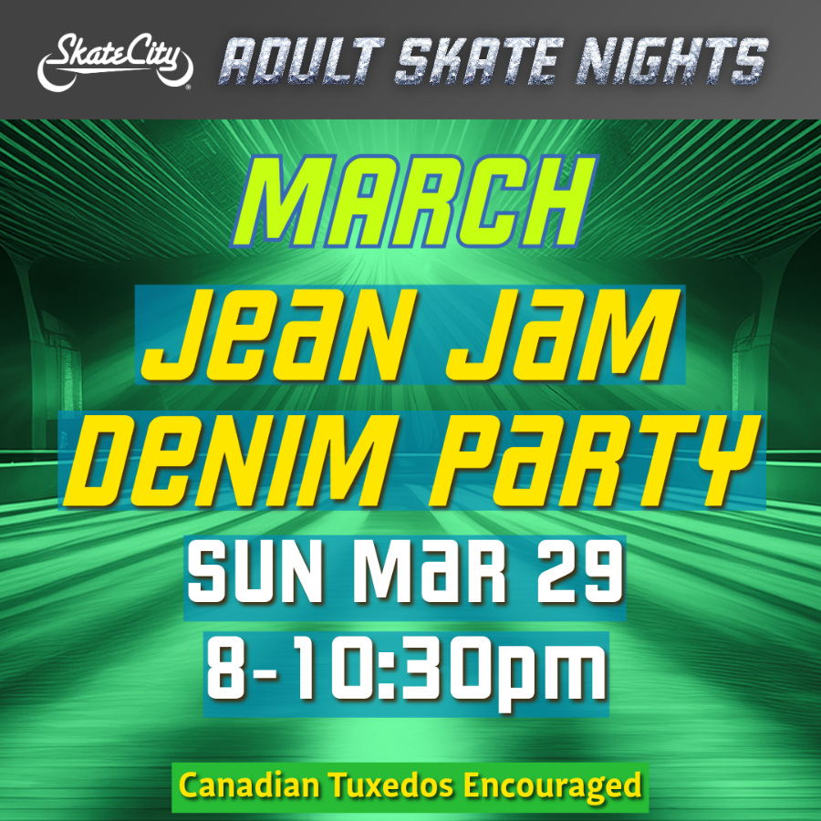 Join us for our Jean Jam Denim Party on Sunday, March 29th from 8-10:30 PM! Canadian Tuxedos are encouraged! Each month brings a new theme, great music, and a fun night out on wheels for adults 18 and up. Whether you’re repping your favorite team, dressing up in holiday gear, or rocking your best thrift store find, there’s something for everyone. Check back each month for what is ahead!