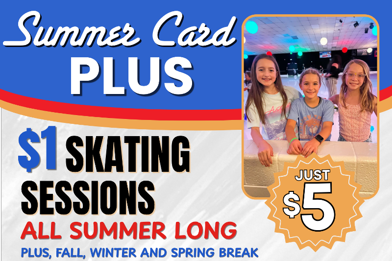 Get ready for more skating and more savings. The Skate City Summer Card PLUS gives you $1 skating sessions all summer long — plus during fall, winter, and spring breaks.