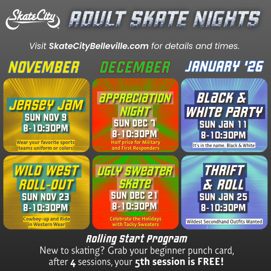Call your Skate City facility directly to book or email events@skatecitybelleville.com