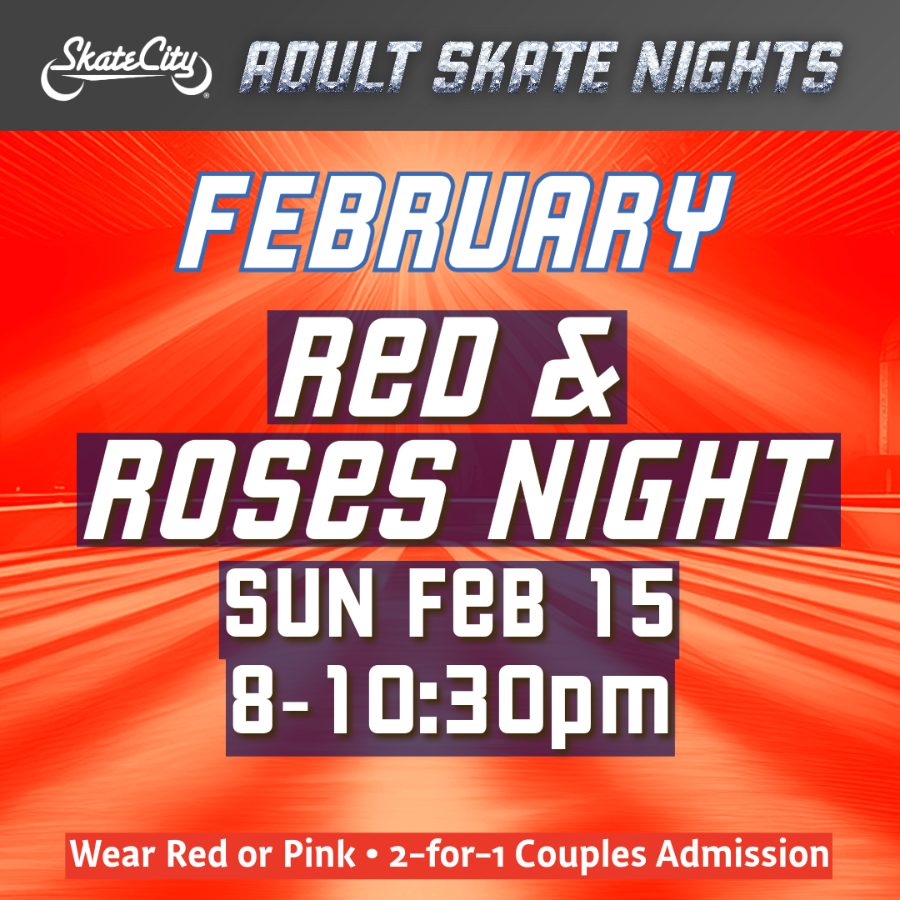 Join us on Sunday, February 15th for our Red and Roses night! Each month brings a new theme, great music, and a fun night out on wheels for adults 18 and up. Whether you’re repping your favorite team, dressing up in holiday gear, or rocking your best thrift store find, there’s something for everyone. Check back each month for what is ahead!